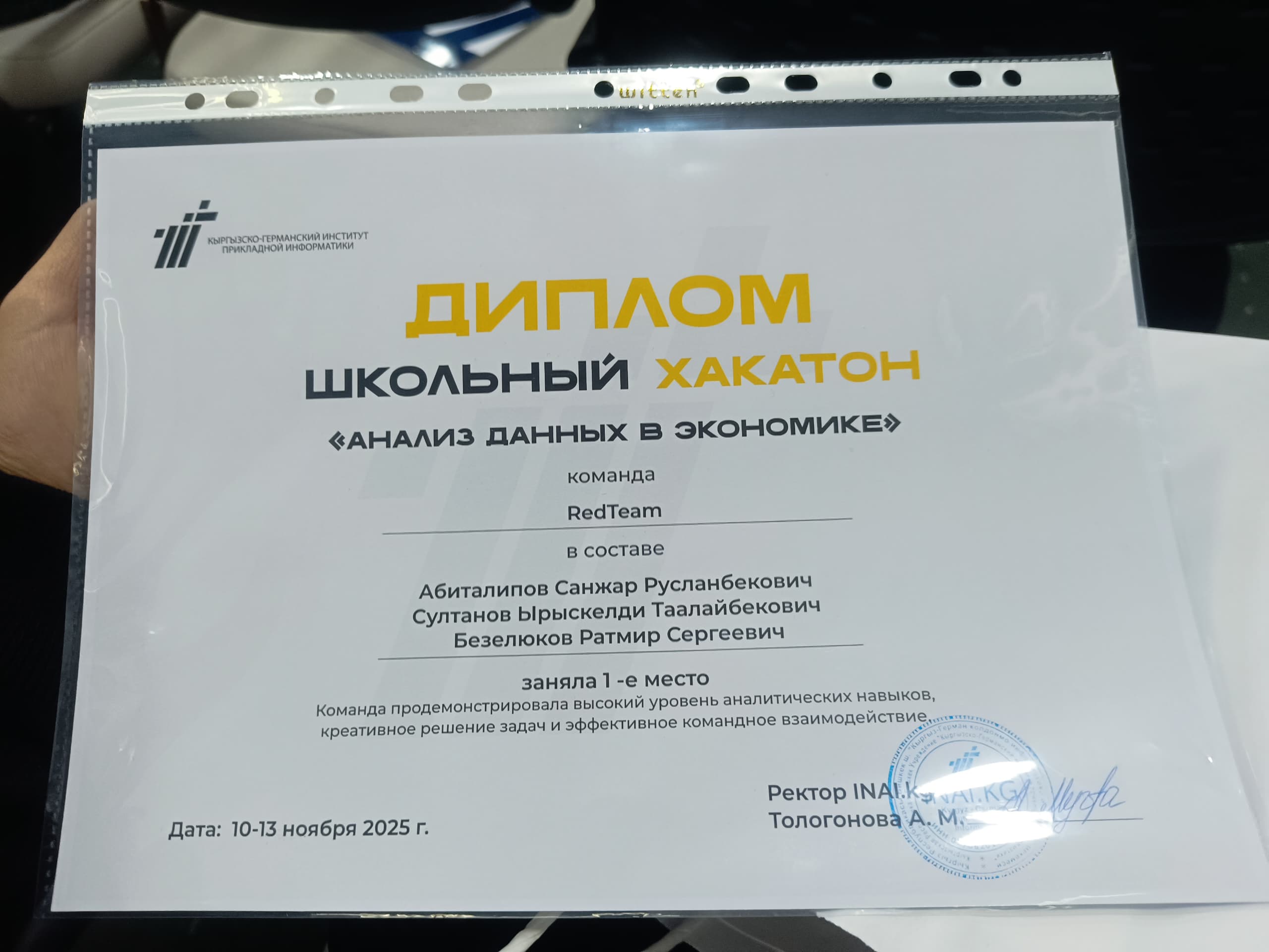 С 10 по 13 ноября в Кыргызско-Германском институте прикладной информатики (INAI.kg) прошёл школьный хакатон по направлению «Анализ данных в экономике».